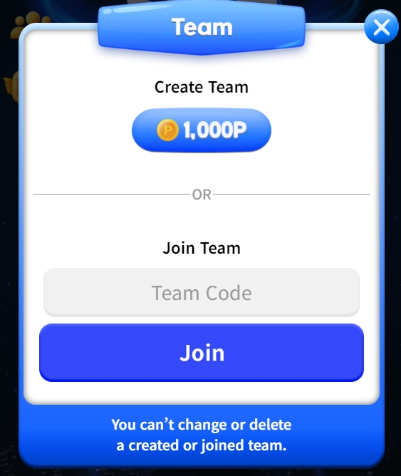 You can create a team or participate as a team member. No change is possible for the team that participated.