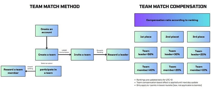 Up to the 3th place in the team, the team leader/team member receives a point boost, and the team leader receives more boost than the team member.